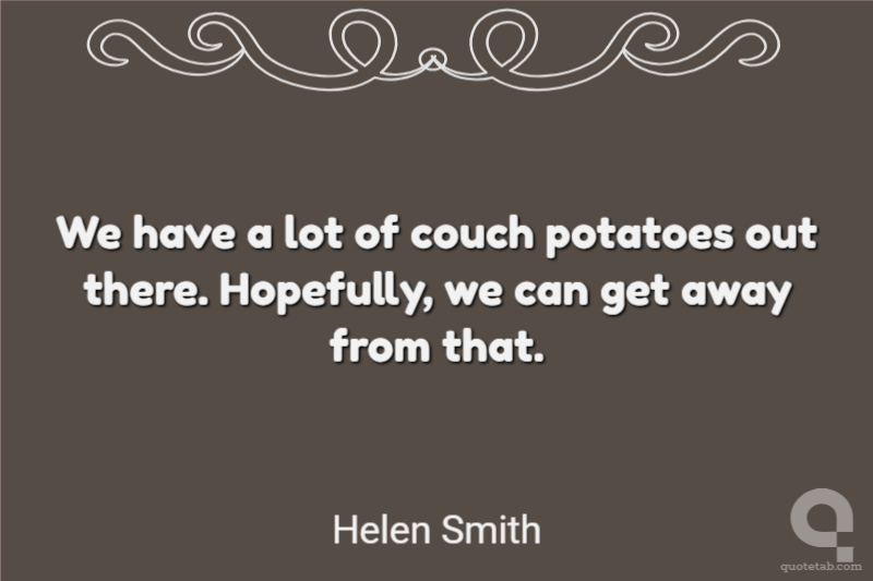 We have a lot of couch potatoes out there. Hopefully, we can get away from that.