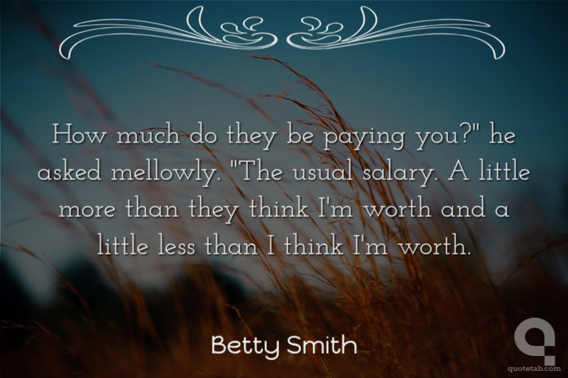 How much do they be paying you?" he asked mellowly. "The usual salary. A little more than they think I'm worth and a little less than I think I'm worth.