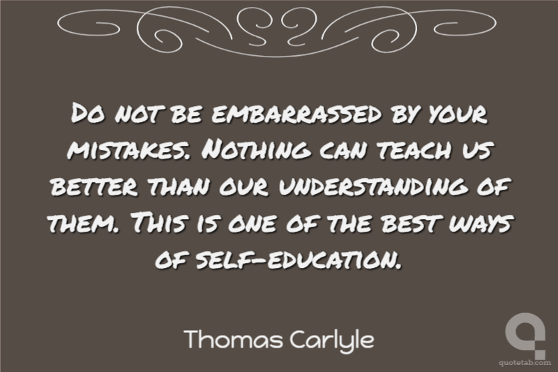 Do not be embarrassed by your mistakes. Nothing can teach us better than our understanding of them. This is one of the best ways of self-education.