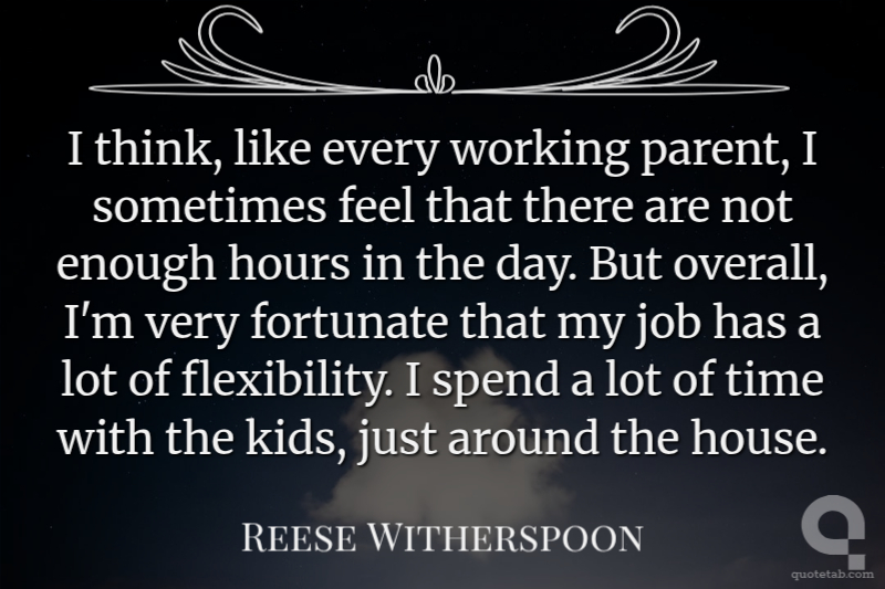 I think, like every working parent, I sometimes feel that there are not enough hours in the day. But overall, I'm very fortunate that my job has a lot of flexibility. I spend a lot of time with the kids, just around the house.
