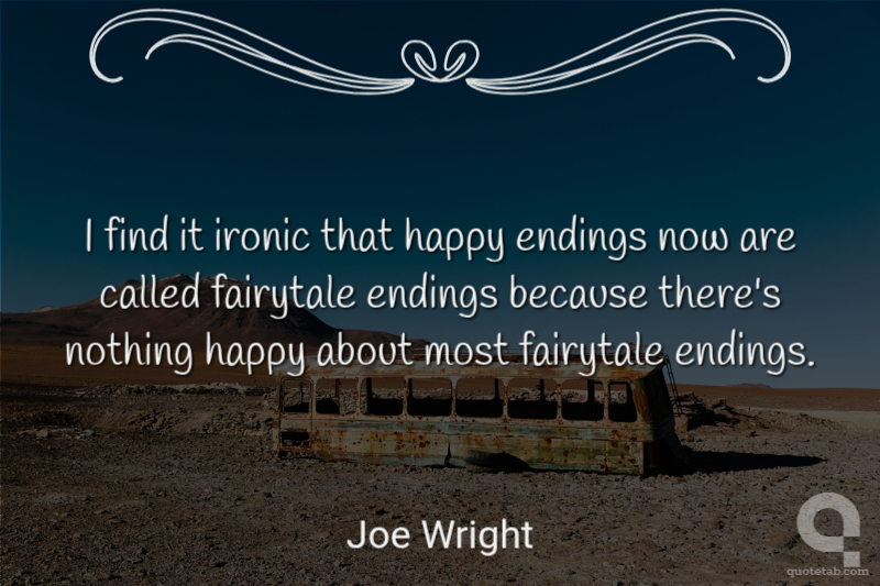 I find it ironic that happy endings now are called fairytale endings because there's nothing happy about most fairytale endings.