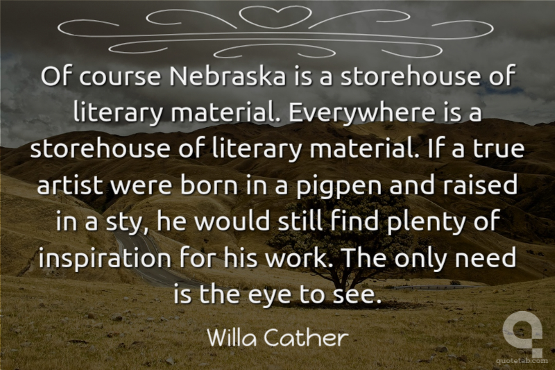 Of course Nebraska is a storehouse of literary material. Everywhere is a storehouse of literary material. If a true artist were born in a pigpen and raised in a sty, he would still find plenty of inspiration for his work. The only need is the eye to see.