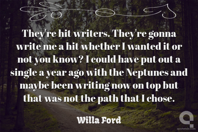 They're hit writers. They're gonna write me a hit whether I wanted it or not you know? I could have put out a single a year ago with the Neptunes and maybe been writing now on top but that was not the path that I chose.