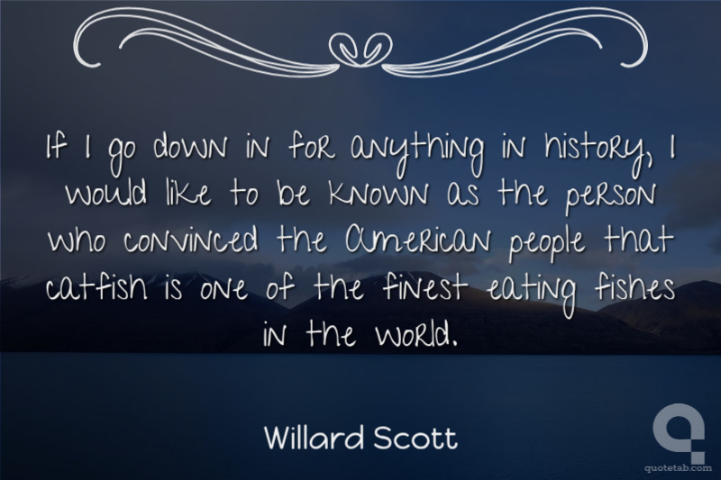 If I go down in for anything in history, I would like to be known as the person who convinced the American people that catfish is one of the finest eating fishes in the world.