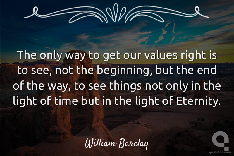The only way to get our values right is to see, not the beginning, but the end of the way, to see things not only in the light of time but in the light of Eternity.