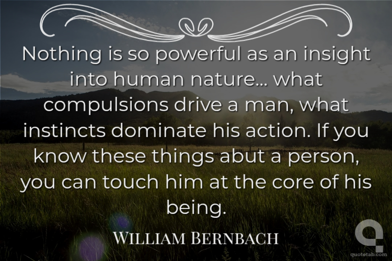 Nothing is so powerful as an insight into human nature... what compulsions drive a man, what instincts dominate his action. If you know these things abut a person, you can touch him at the core of his being.