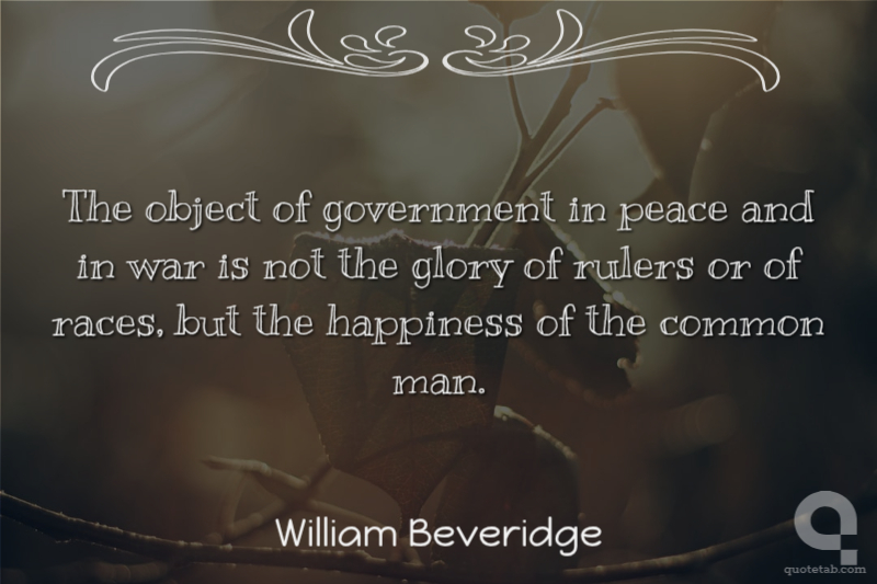 The object of government in peace and in war is not the glory of rulers or of races, but the happiness of the common man.