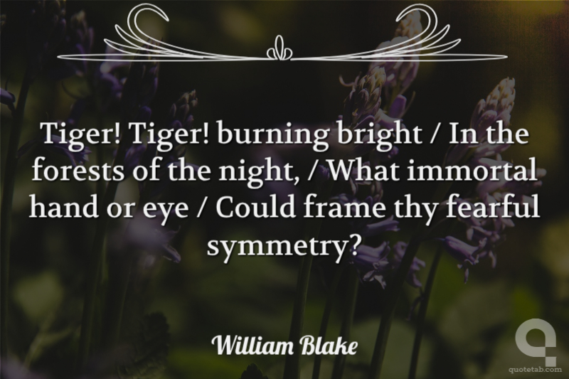 Tiger! Tiger! burning bright / In the forests of the night, / What immortal hand or eye / Could frame thy fearful symmetry?