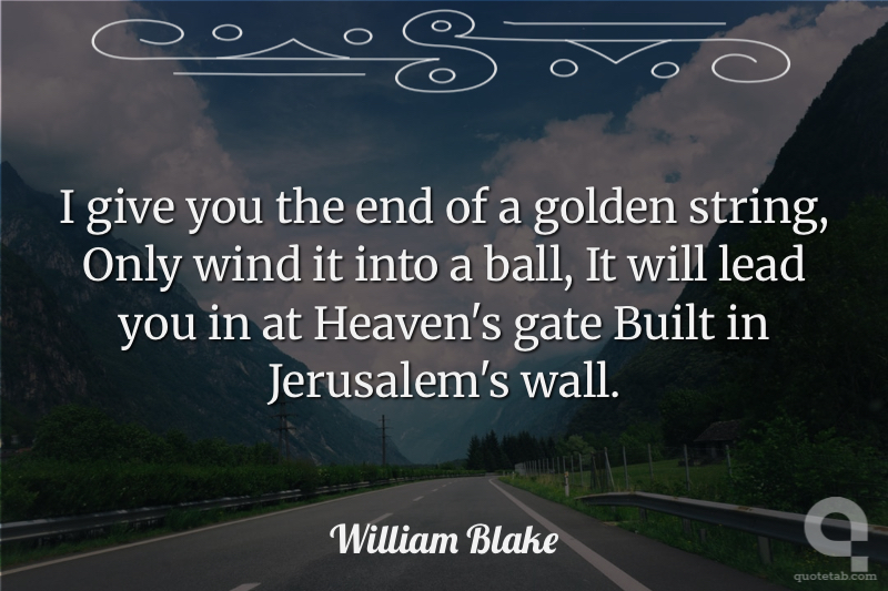 I give you the end of a golden string, Only wind it into a ball, It will lead you in at Heaven's gate Built in Jerusalem's wall.