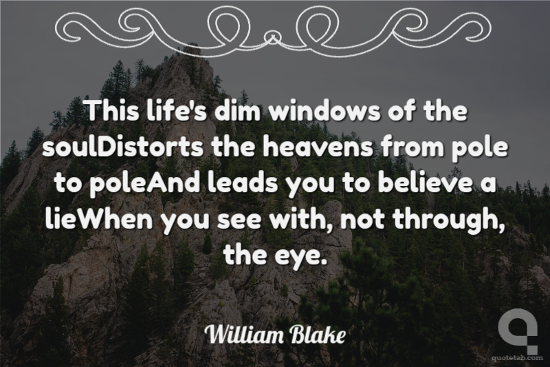 This life's dim windows of the soulDistorts the heavens from pole to poleAnd leads you to believe a lieWhen you see with, not through, the eye.