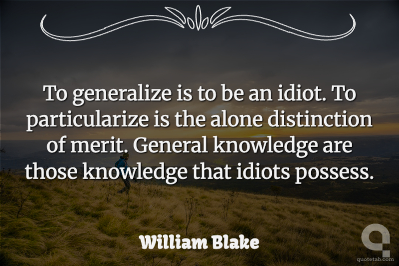 To generalize is to be an idiot. To particularize is the alone distinction of merit. General knowledge are those knowledge that idiots possess.