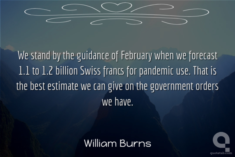 We stand by the guidance of February when we forecast 1.1 to 1.2 billion Swiss francs for pandemic use. That is the best estimate we can give on the government orders we have.