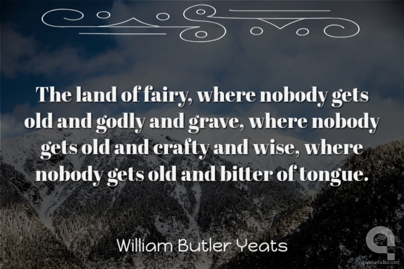 The land of fairy, where nobody gets old and godly and grave, where nobody gets old and crafty and wise, where nobody gets old and bitter of tongue.