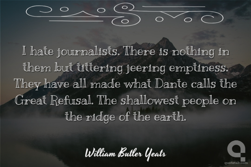 I hate journalists. There is nothing in them but tittering jeering emptiness. They have all made what Dante calls the Great Refusal. The shallowest people on the ridge of the earth.