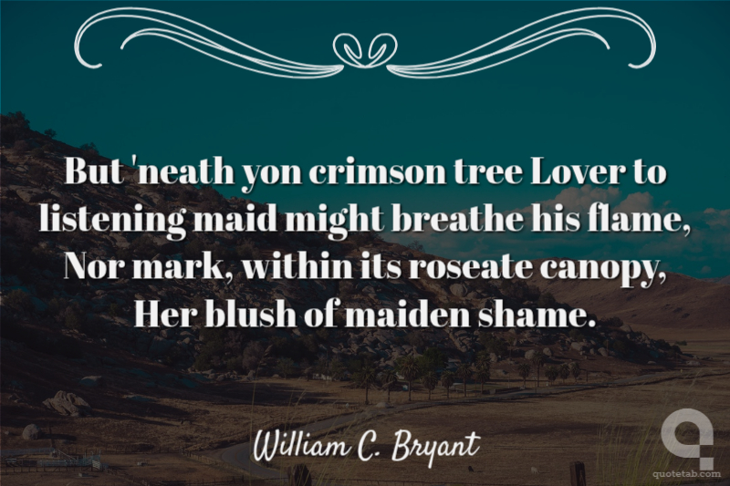 But 'neath yon crimson tree Lover to listening maid might breathe his flame, Nor mark, within its roseate canopy, Her blush of maiden shame.