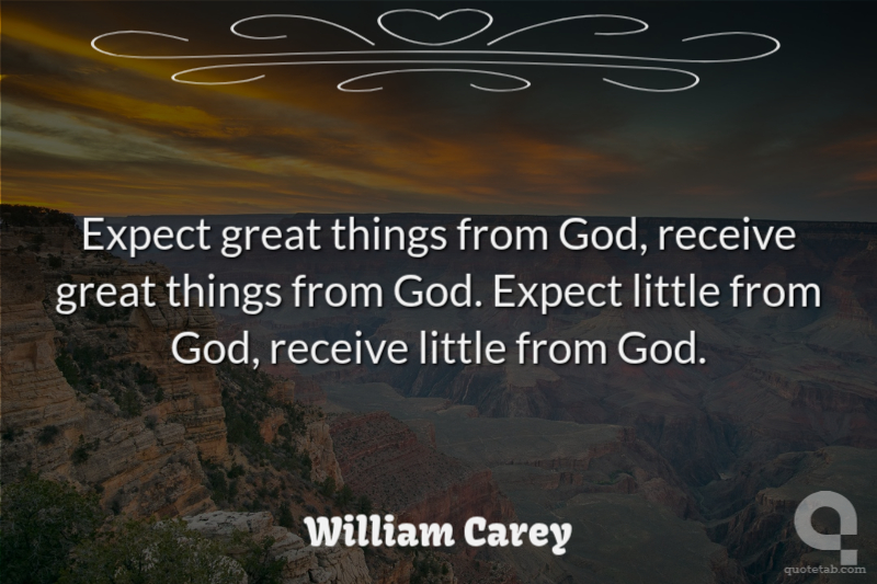 Expect great things from God, receive great things from God. Expect little from God, receive little from God.