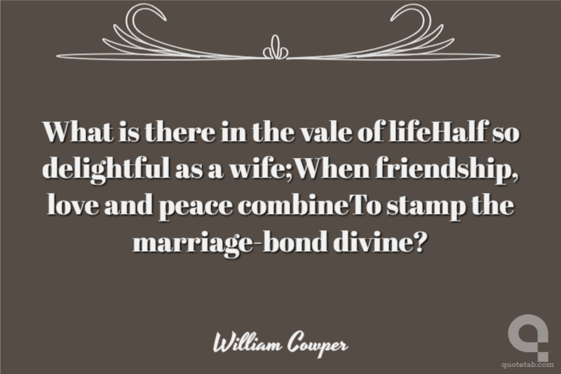 What is there in the vale of lifeHalf so delightful as a wife;When friendship, love and peace combineTo stamp the marriage-bond divine?