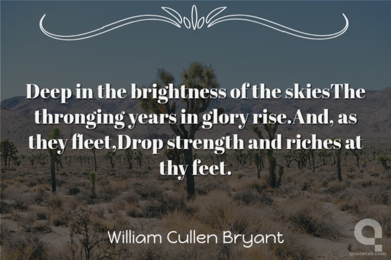 Deep in the brightness of the skiesThe thronging years in glory rise.And, as they fleet,Drop strength and riches at thy feet.