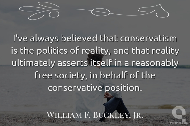 I've always believed that conservatism is the politics of reality, and that reality ultimately asserts itself in a reasonably free society, in behalf of the conservative position.