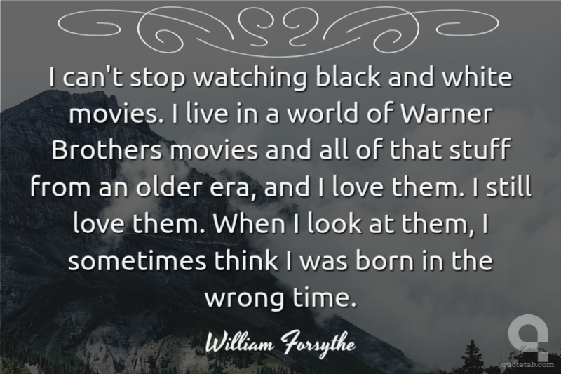 I can't stop watching black and white movies. I live in a world of Warner Brothers movies and all of that stuff from an older era, and I love them. I still love them. When I look at them, I sometimes think I was born in the wrong time.