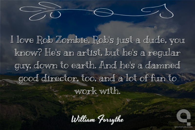 I love Rob Zombie. Rob's just a dude, you know? He's an artist, but he's a regular guy, down to earth. And he's a damned good director, too, and a lot of fun to work with.