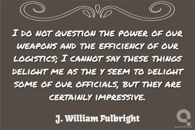 I do not question the power of our weapons and the efficiency of our logistics; I cannot say these things delight me as the y seem to delight some of our officials, but they are certainly impressive.