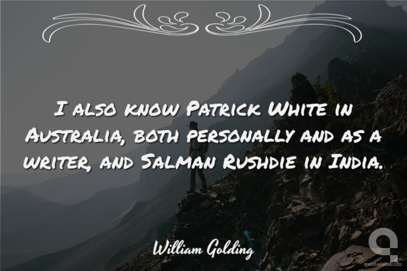 I also know Patrick White in Australia, both personally and as a writer, and Salman Rushdie in India.
