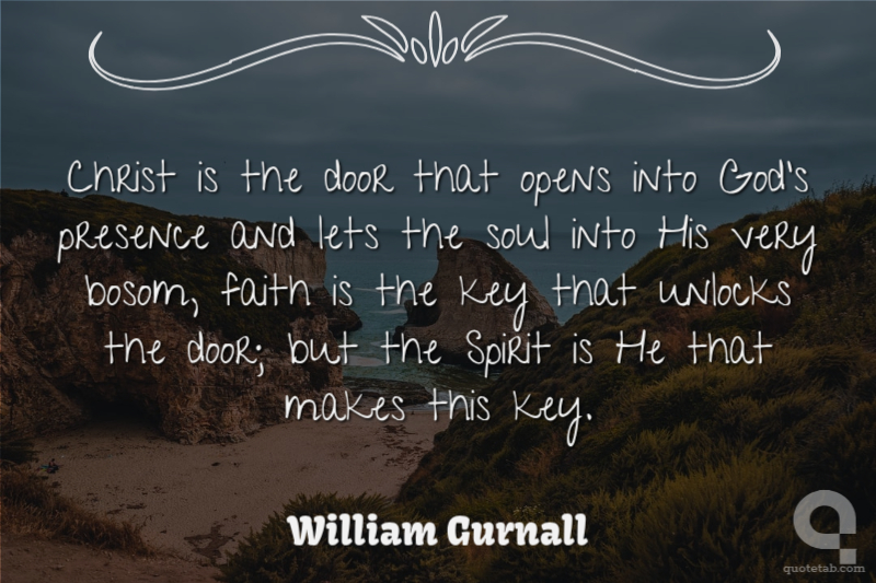 Christ is the door that opens into God's presence and lets the soul into His very bosom, faith is the key that unlocks the door; but the Spirit is He that makes this key.