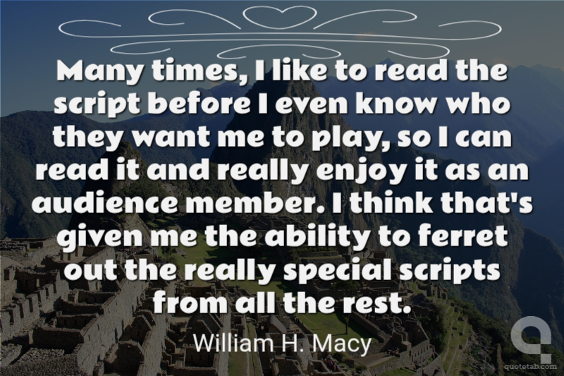 Many times, I like to read the script before I even know who they want me to play, so I can read it and really enjoy it as an audience member. I think that's given me the ability to ferret out the really special scripts from all the rest.