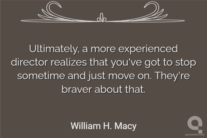 Ultimately, a more experienced director realizes that you've got to stop sometime and just move on. They're braver about that.