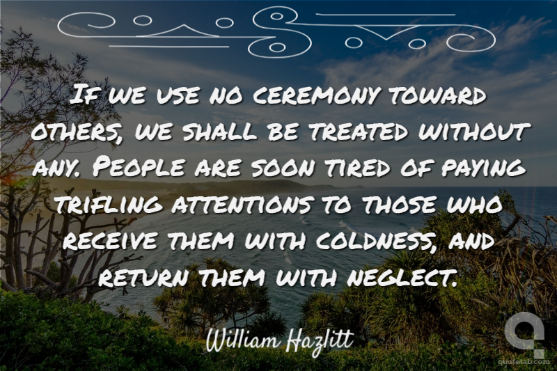 If we use no ceremony toward others, we shall be treated without any. People are soon tired of paying trifling attentions to those who receive them with coldness, and return them with neglect.