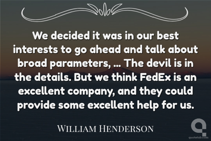 We decided it was in our best interests to go ahead and talk about broad parameters, ... The devil is in the details. But we think FedEx is an excellent company, and they could provide some excellent help for us.