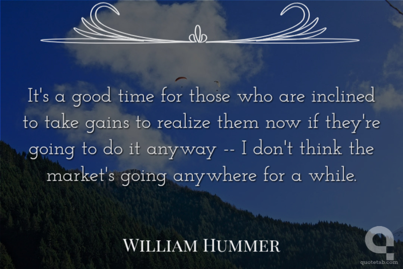 It's a good time for those who are inclined to take gains to realize them now if they're going to do it anyway -- I don't think the market's going anywhere for a while.