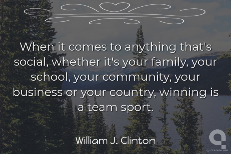 When it comes to anything that's social, whether it's your family, your school, your community, your business or your country, winning is a team sport.