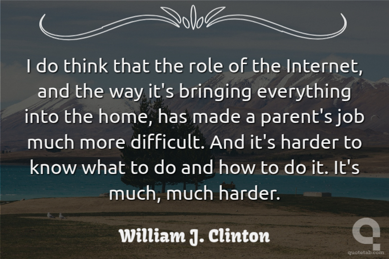 I do think that the role of the Internet, and the way it's bringing everything into the home, has made a parent's job much more difficult. And it's harder to know what to do and how to do it. It's much, much harder.