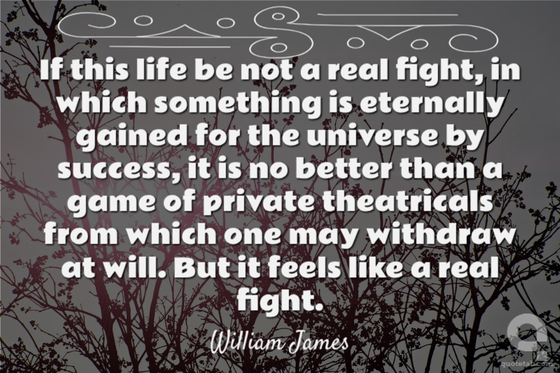 If this life be not a real fight, in which something is eternally gained for the universe by success, it is no better than a game of private theatricals from which one may withdraw at will. But it feels like a real fight.