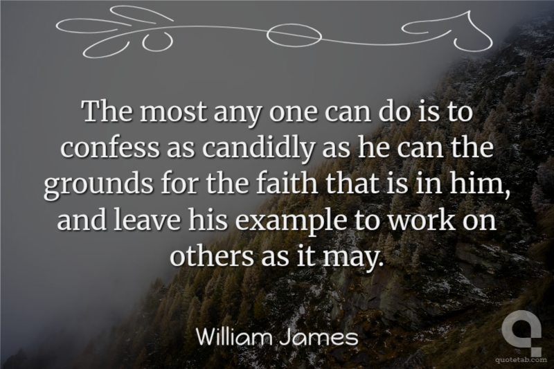It is only by risking our persons from one hour to another that we live at all. And often enough our faith beforehand in an uncertified result is the only thing that makes the result come true.