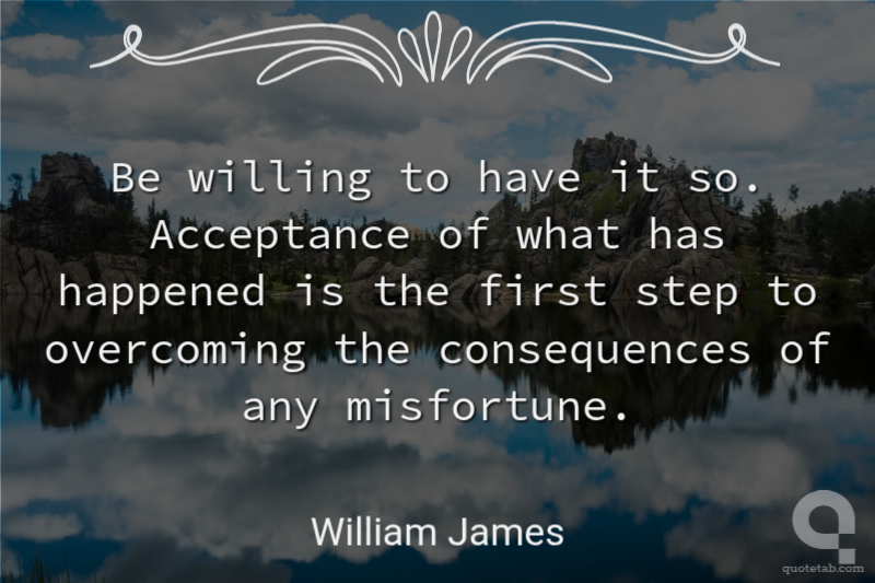 Be willing to have it so. Acceptance of what has happened is the first step to overcoming the consequences of any misfortune.
