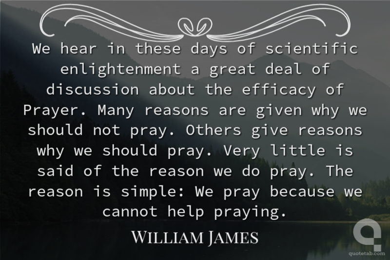 The exercise of prayer, in those who habitually exert it, must be regarded by us doctors as the most adequate and normal of all the pacifiers of the mind and calmers of the nerves.
