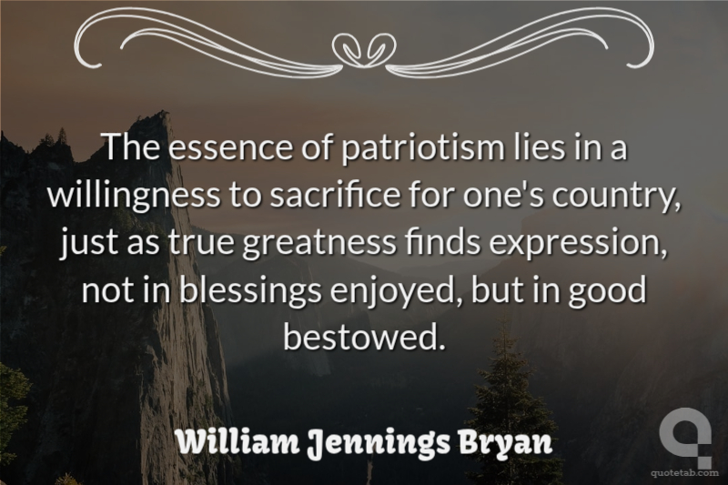 The essence of patriotism lies in a willingness to sacrifice for one's country, just as true greatness finds expression, not in blessings enjoyed, but in good bestowed.
