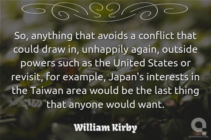 So, anything that avoids a conflict that could draw in, unhappily again, outside powers such as the United States or revisit, for example, Japan's interests in the Taiwan area would be the last thing that anyone would want.