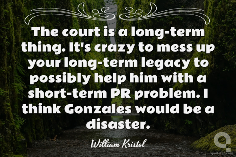 The court is a long-term thing. It's crazy to mess up your long-term legacy to possibly help him with a short-term PR problem. I think Gonzales would be a disaster.