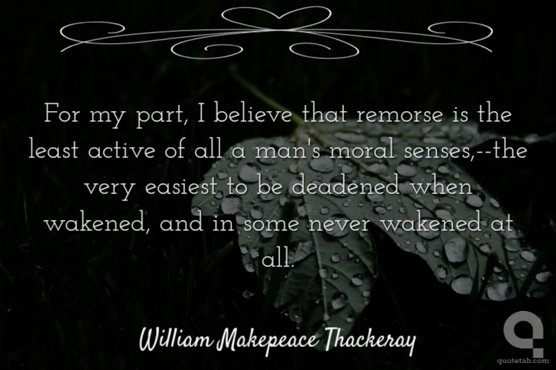 For my part, I believe that remorse is the least active of all a man's moral senses,--the very easiest to be deadened when wakened, and in some never wakened at all.