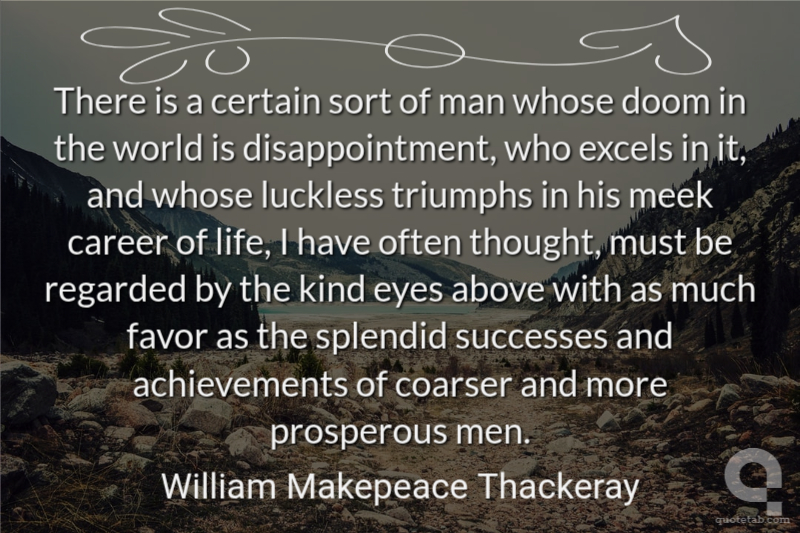 There is a certain sort of man whose doom in the world is disappointment, who excels in it, and whose luckless triumphs in his meek career of life, I have often thought, must be regarded by the kind eyes above with as much favor as the splendid successes and achievements of coarser and more prosperous men.
