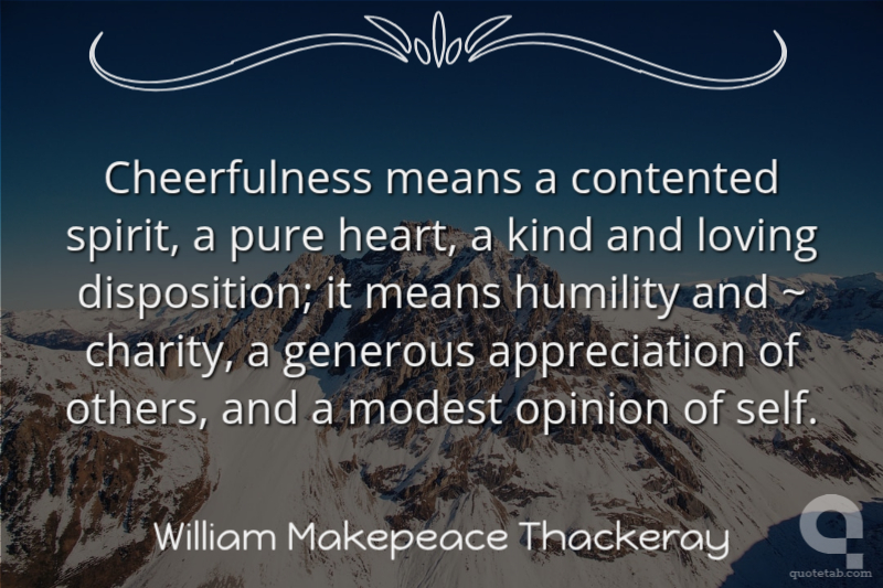 Cheerfulness means a contented spirit, a pure heart, a kind and loving disposition; it means humility and ~ charity, a generous appreciation of others, and a modest opinion of self.
