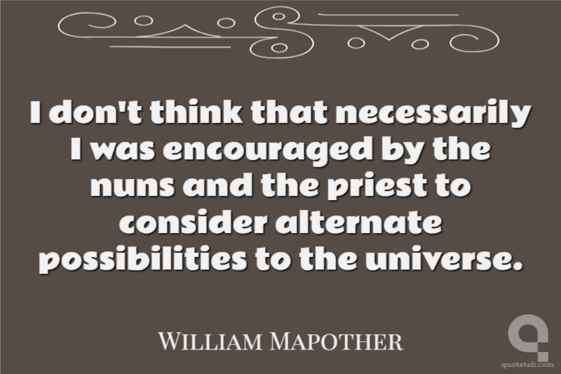 I don't think that necessarily I was encouraged by the nuns and the priest to consider alternate possibilities to the universe.