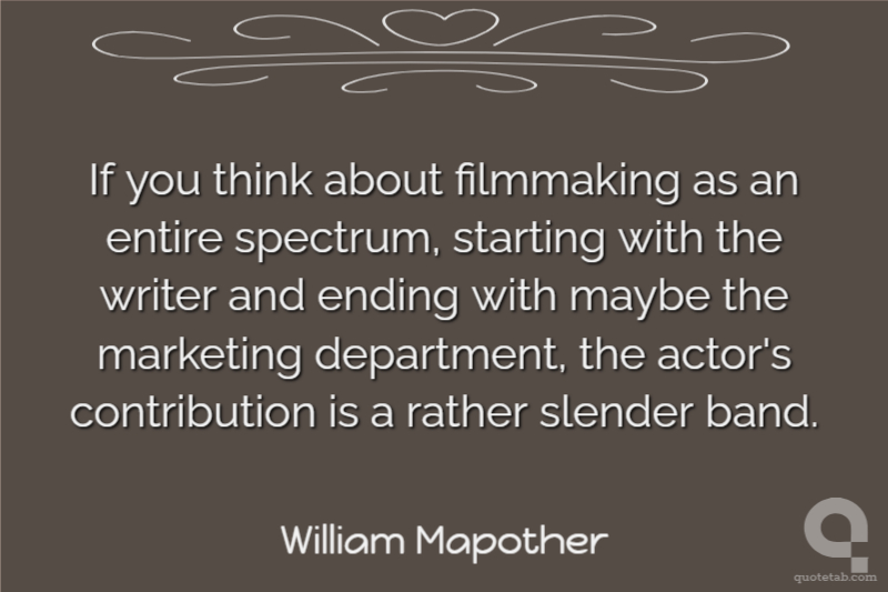 If you think about filmmaking as an entire spectrum, starting with the writer and ending with maybe the marketing department, the actor's contribution is a rather slender band.