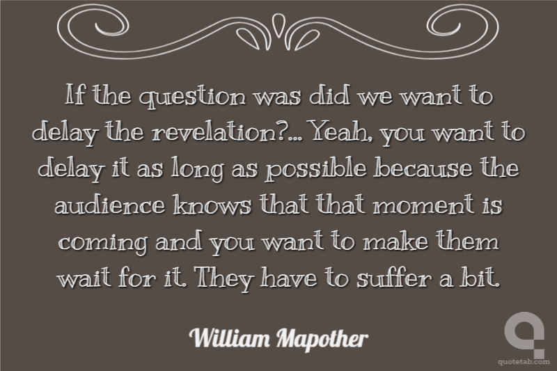 If the question was did we want to delay the revelation?... Yeah, you want to delay it as long as possible because the audience knows that that moment is coming and you want to make them wait for it. They have to suffer a bit.