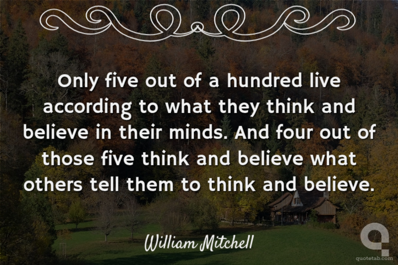 Only five out of a hundred live according to what they think and believe in their minds. And four out of those five think and believe what others tell them to think and believe.