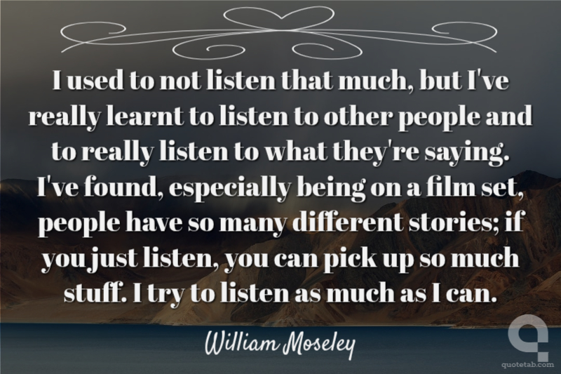 I used to not listen that much, but I've really learnt to listen to other people and to really listen to what they're saying. I've found, especially being on a film set, people have so many different stories; if you just listen, you can pick up so much stuff. I try to listen as much as I can.